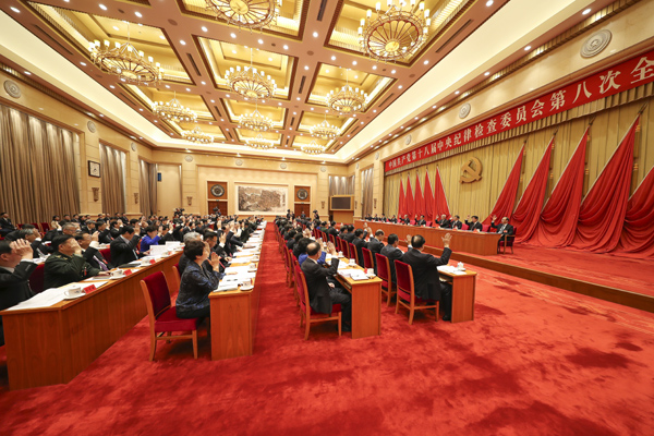 10月9日,十八届中央纪委第八次全会在北京举行。全会审议并通过了十八届中央纪律检查委员会向中国共产党第十九次全国代表大会的工作报告,同意将报告提请中国共产党第十八届中央委员会第七次全体会议审议。(中央纪委监察部网站 胡思远 摄)