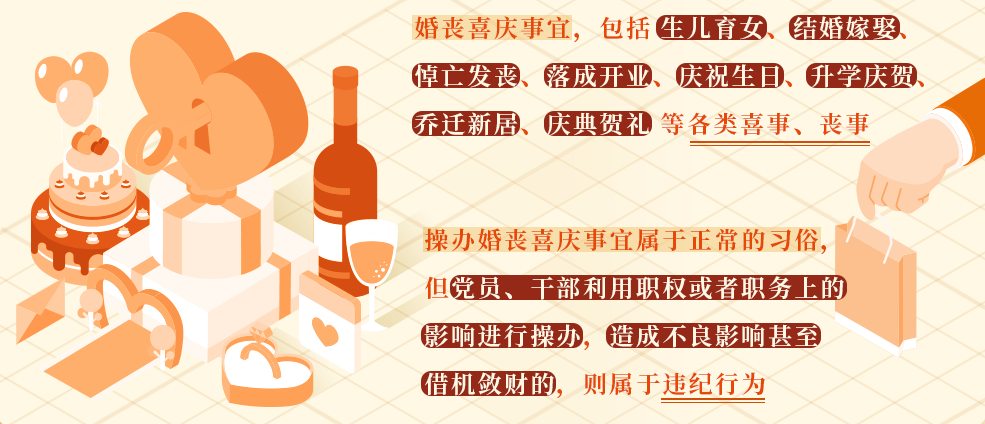 婚丧喜庆事宜本是日常生活中的人之常情,但有些党员利用职权或者职务上的影响大操大办婚丧喜庆事宜,造成了较为恶劣的影响,不但影响正常工作,甚至有的还成为借机敛财的手段。为严格制止这类行为,也是落实中央八项规定精神要求,作出本条规定。
