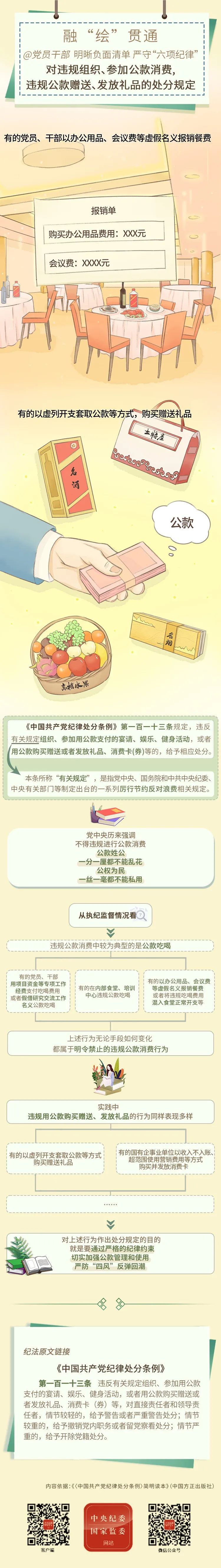 融“绘“贯通丨对违规组织、参加公款消费,违规公款赠送、发放礼品的处分规定
