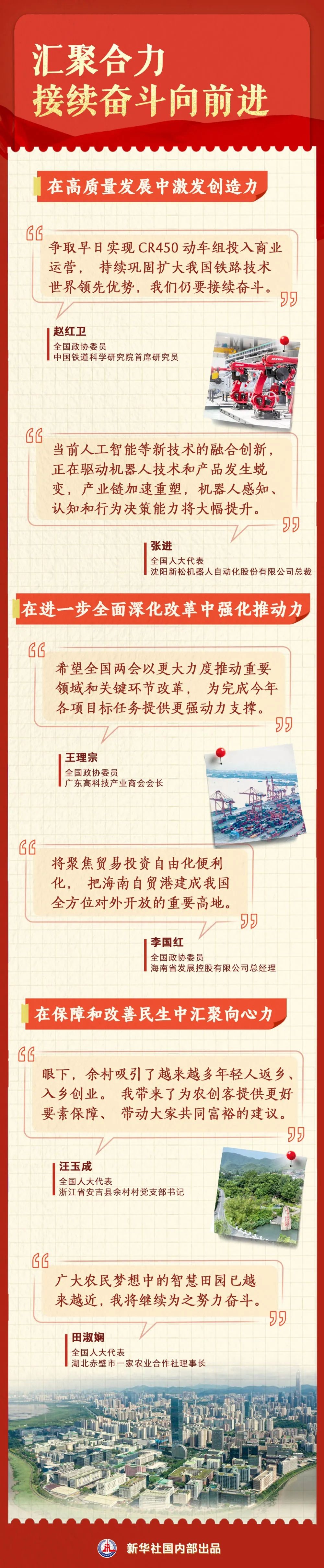 春潮奔涌,代表委员们意气风发,带着人民嘱托,肩负光荣使命,奏响凝心聚力、真抓实干、团结奋进的强音。回首2024年,我国顺利完成经济社会发展主要目标任务,国内生产总值跃上130万亿元新台阶,中国式现代化迈出新的坚实步伐。