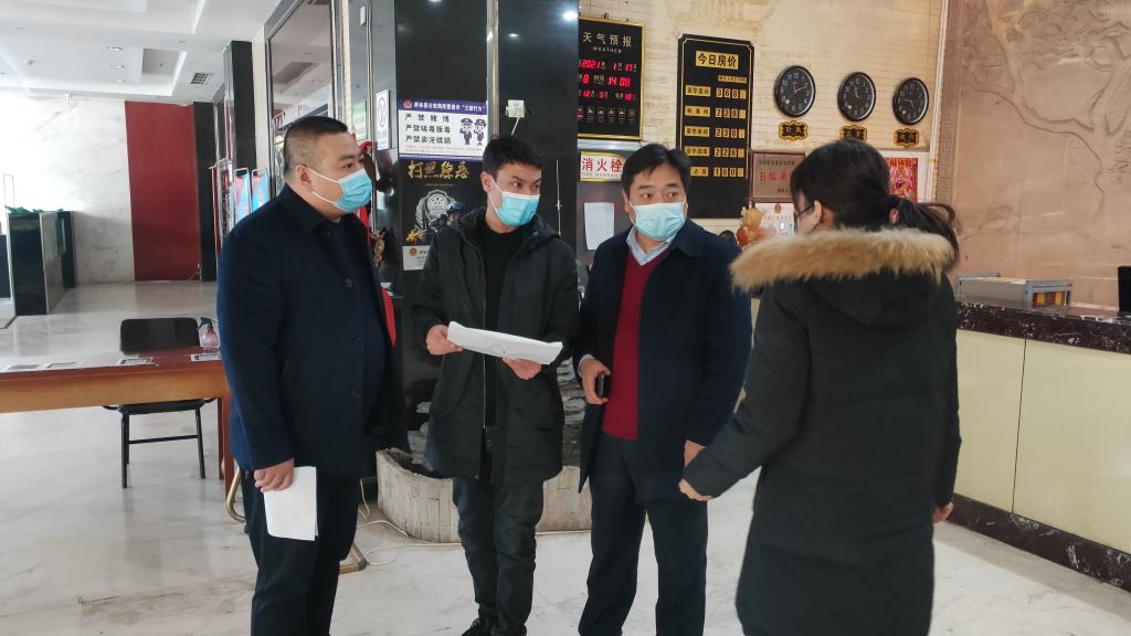 1月16日,第四督查组深入府谷亿融国际酒店、文华礼宴酒店、鸿福酒店、王府井酒店、臣民王子酒店、恒义德酒店、海汇酒店对疫情防控工作开展监督检查,对发现的问题及时反馈整改,跟踪督办。