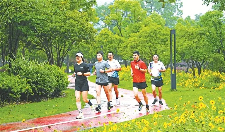 图为5月29日,路跑爱好者在浙江省台州市仙居县永安溪生态绿道上晨跑。(图片来源:视觉中国)
