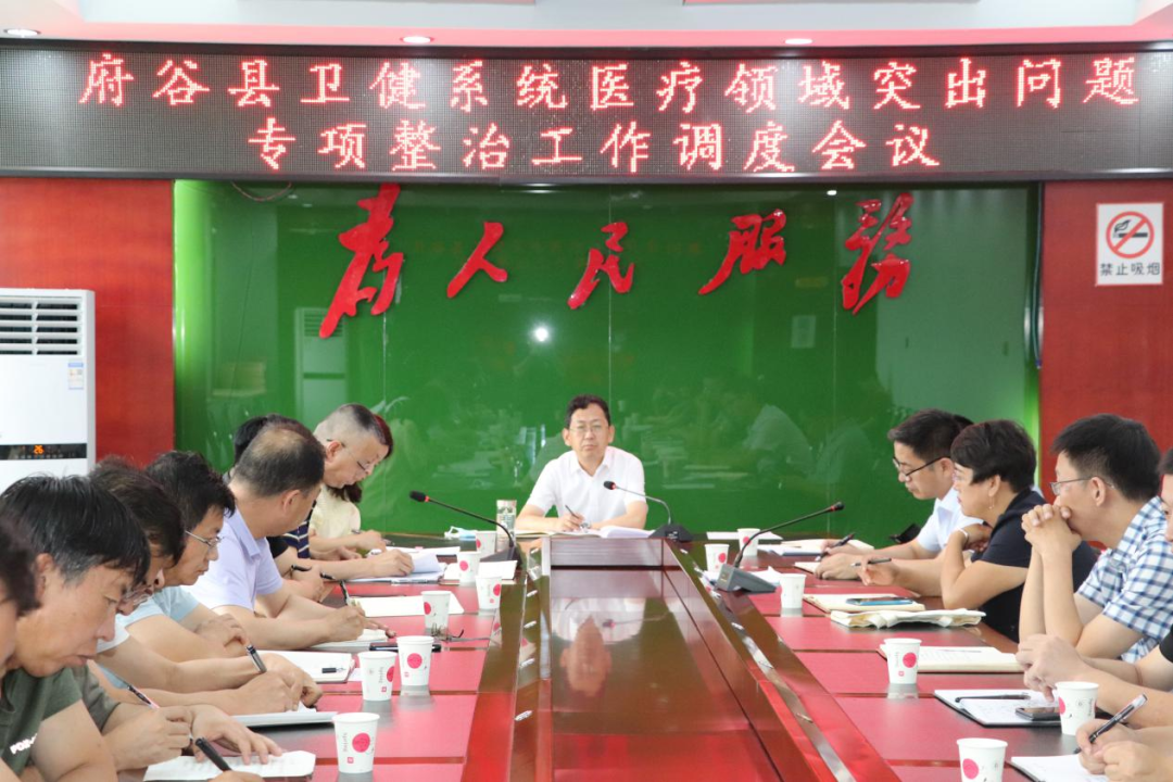 8月8日,府谷县卫生健康局召开医疗领域群众反映强烈突出问题专项整治工作调度会议。卫健局机关、驻局纪检监察组、局属各单位主要负责人参加会议。