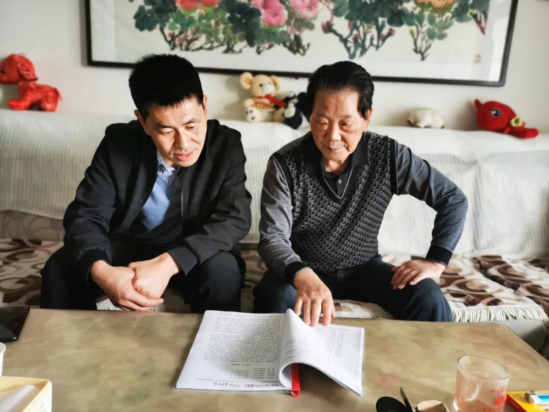 侯义明(左一)就姚村村史的编撰问题请教有关专家学者。(受访者供图)