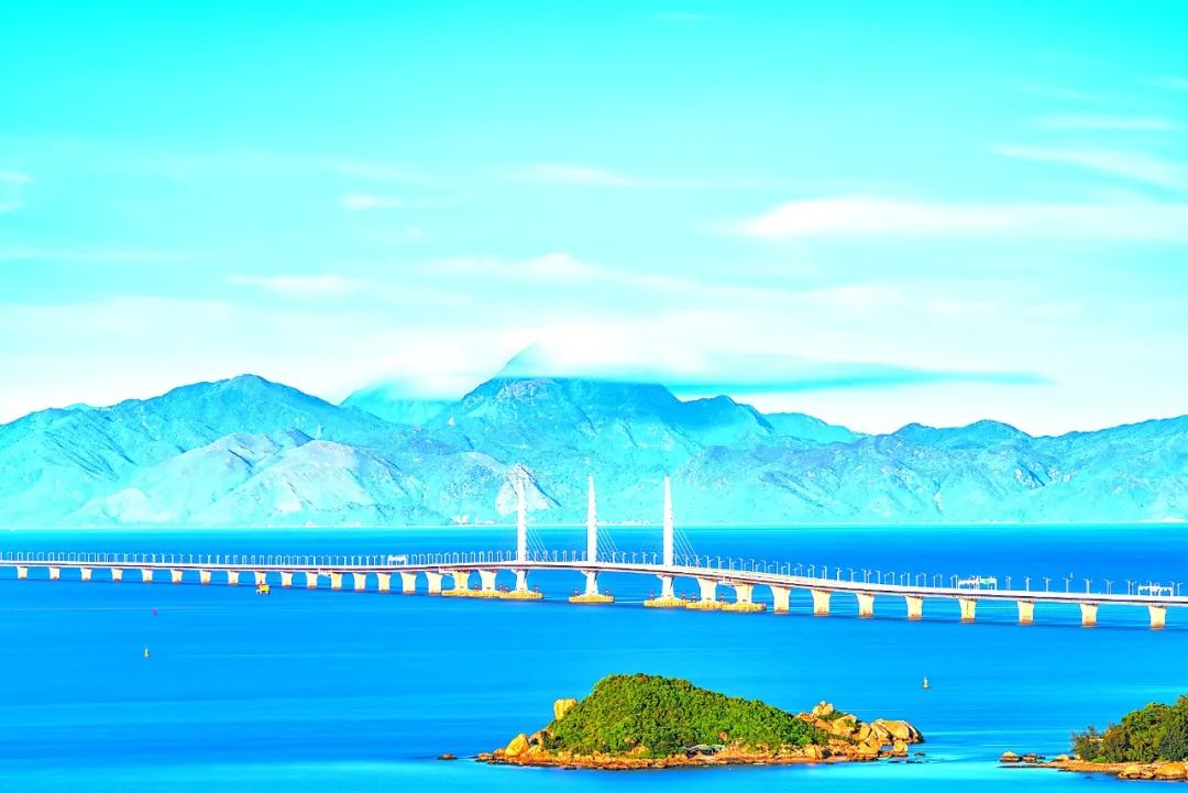 作为世界最长的跨海大桥,港珠澳大桥创造了世界桥梁史上的奇迹,粤港澳三地人流、车流和物流更加紧密地联系在一起,大湾区内的要素流动更为便利。自通车以来,港珠澳大桥珠海口岸货物进出口总值超3000亿元。(图片来源:视觉中国)