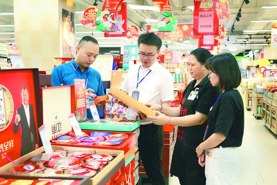 临近中秋,重庆市潼南区纪委监委紧盯“四风”老问题、新动向,联合派驻纪检监察组、行业主管部门和镇街纪(工)委组成监督检查组,深入辖区内商超、酒店等开展现场监督检查。图为近日,监督检查组在辖区某超市摸排是否存在公款购买月饼情况。李扬 摄