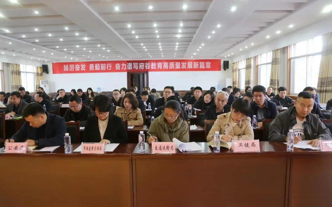 县公安局、市场监管局、交通局、卫健局、文旅局相关科室负责同志,县教体局局机关全体,局属单位、各学区(校)、幼儿园(含民办园)负责人等100余人参加会议。