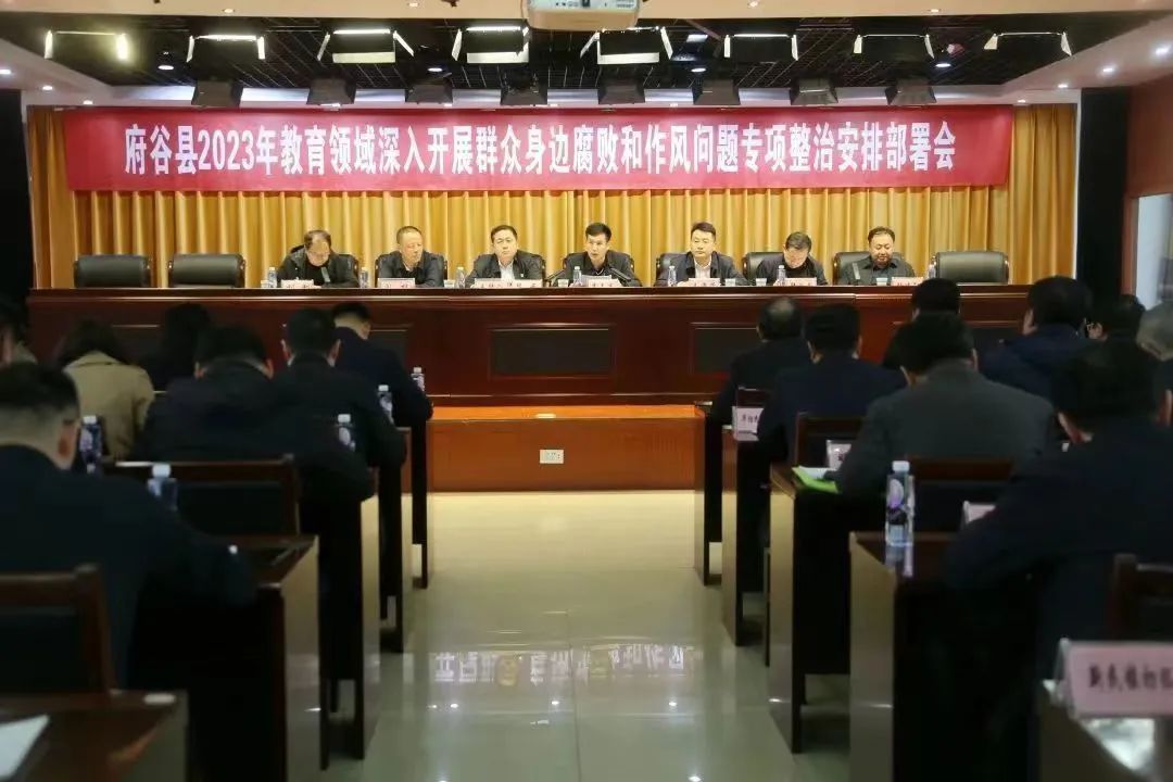 会议传达学习了省市教育等部门及县纪委监委关于深入开展群众身边腐败和作风问题专项整治要求,解读了县教体局等八家单位联合印发的《府谷县2023年深入开展教育领域群众身边腐败和作风问题专项整治实施方案》精神,并对专项整治工作进行安排部署。