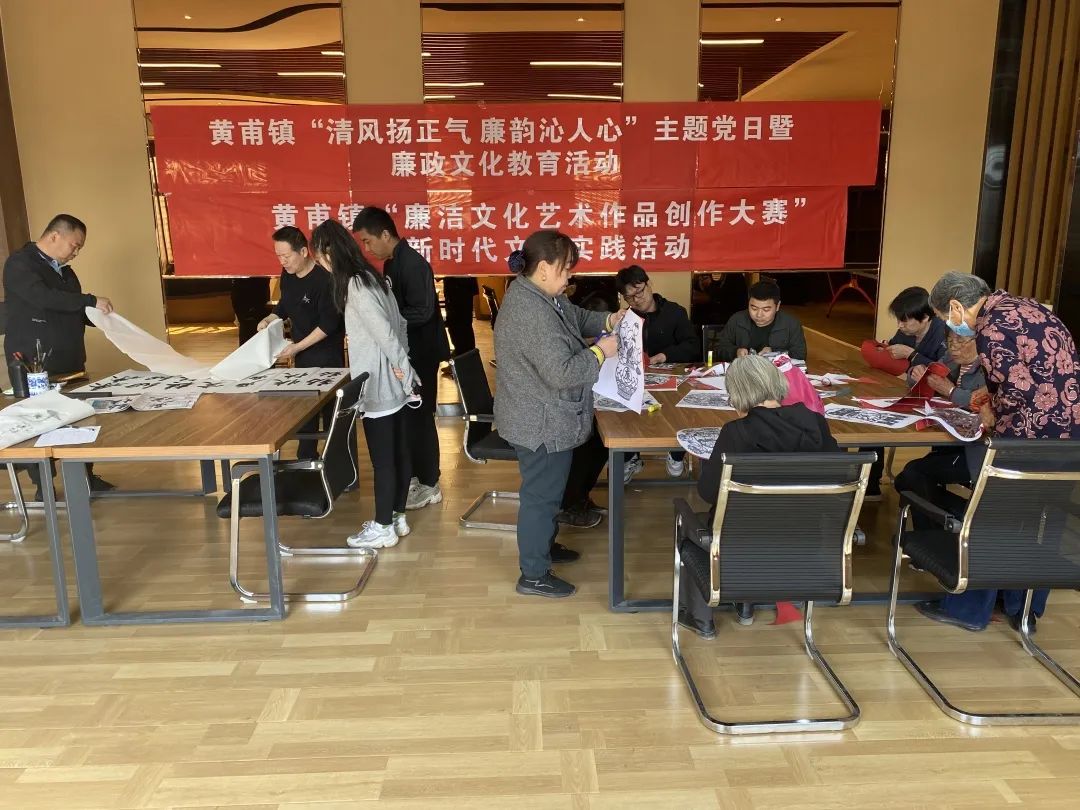为认真贯彻廉洁文化建设的部署要求,进一步推动“转作风、树形象、优环境、促发展”专题年活动开展走深做实,全力营造崇尚廉洁、倡导廉洁、践行廉洁的浓厚氛围。4月15日,黄甫镇纪委组织开展了“清风扬正气 廉韵沁人心”主题党日暨廉政文化教育活动,来自该镇各村党支部、机关支部的28名党员代表参加了本次活动。活动以书法和剪纸为主要形式,将传统文化与廉政文化有机结合,用民俗艺术展现清廉之风,广大党员干部在寓教于乐的过程中,集体上了一堂生动的“廉政课”。