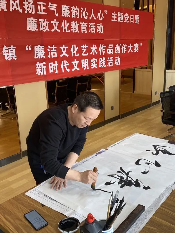 在书法活动区,大家挥毫泼墨,“勤快严实精细廉”“好干部标准”“一身正气两袖清风”“为民务实清廉”等一幅幅以廉政廉洁为主题的书法作品相继呈现,以无声的教育带来深刻的内心感悟,将感知内化提升为廉政信念,进一步唤醒了广大党员干部遵纪守法、廉洁从政的思想自觉和行动自觉。