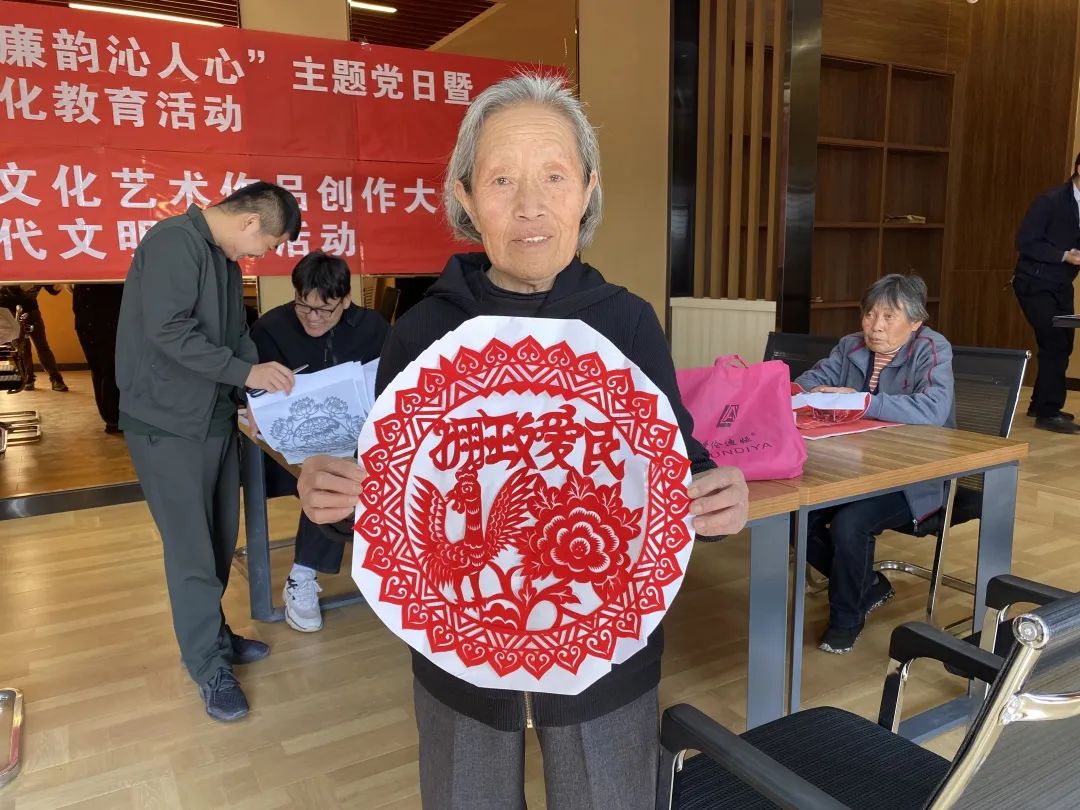 在剪纸活动区,大家围绕廉政文化和传统文化用自己的巧手剪出了象征廉洁的莲花、翠竹,以“镂空”的工艺雕刻出“清正廉洁”“廉洁奉公”等字样,一张张红纸在大家手中变成了各式各样的廉政文化艺术品。大家在感受剪纸艺术魅力的同时,凝聚起廉政文化精神力量。