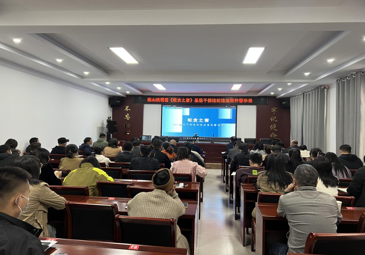 为进一步深入开展基层党风廉政建设和反腐败工作,引导广大党员干部增强纪律规矩意识和廉洁自律意识,3月24日,府谷县孤山镇组织镇机关全体领导干部、各村党支部书记集中观看了由中央纪委国家监委拍摄的基层干部违纪违法警示录《蚁贪之害》,以案释纪、以案为戒,使全体领导干部对照警醒,做到心有所戒、行有所止、警钟长鸣。