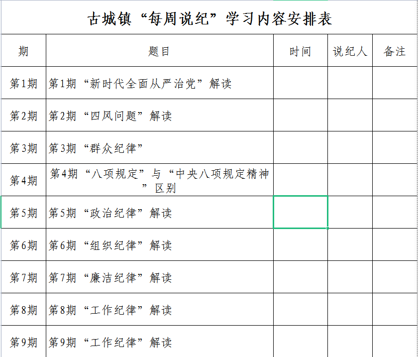 为夯实清正廉洁思想根基,筑牢拒腐防变思想防线,推动全面从严治党向纵深推进,提高一体推进“三不腐”的能力和水平,常态化长效化开展党纪法规和廉洁文化教育。古城镇纪委利用每周例会开设“每周说纪”专栏,通过经常性说德、说纪、说法、说责教育,为高质量发展营造风清气正的廉洁氛围。