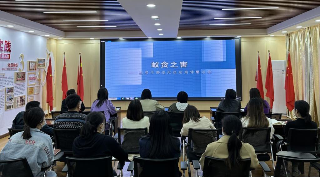 为持续推进“干部作风能力提升年”活动走深走实,切实强化府兴路便民服务中心廉政建设和反腐败工作,增强党员干部廉洁自律意识和拒腐防变能力,4月11日上午,府兴路便民服务中心干部集中观看了警示教育片《蚁贪之害》,用基层违纪违法案件教育基层干部,进一步强化党员干部廉洁自律意识。