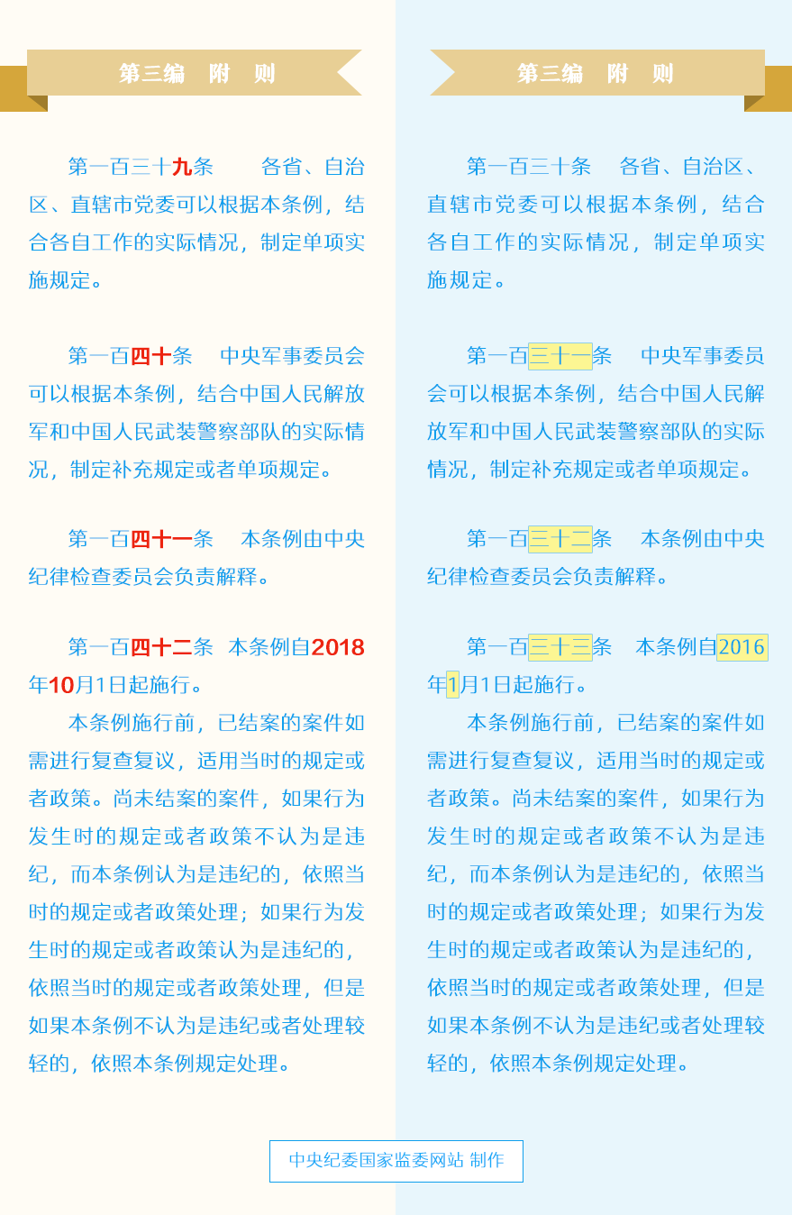 《中国共产党纪律处分条例》修订前后对照表