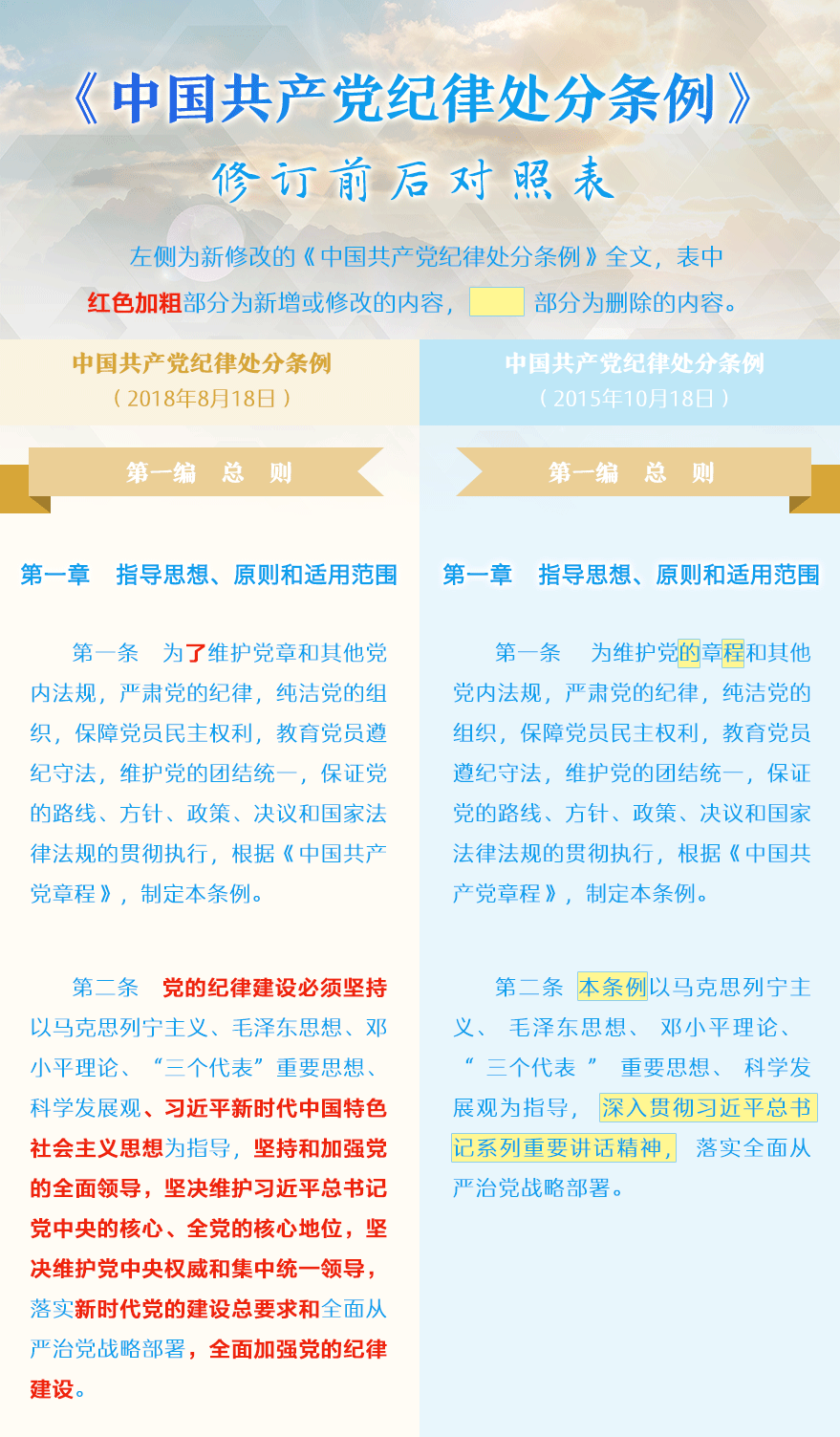 《中国共产党纪律处分条例》修订前后对照表PDF格式下载