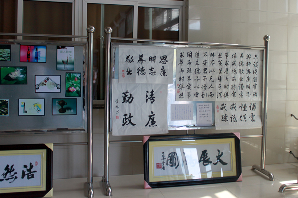 在办公楼一楼东侧墙角,笔者目睹了该公司廉洁文化作品展中展出的作品,公司党委副书记、副董事长高学林的“正气清风”、“勤政清廉”等书法作品,苍劲有力、龙飞凤舞;“套牢”、“文字狱”等绘画摄影作品构图巧妙、内涵丰富;一线女职工一针一线、纯手工制作的十字绣,秀丽雅致,引人惊叹连连。“这些都是我们职工自己的作品,通过这样的活动,对激发职工们的廉政文化建设热情也有很大的帮助。”