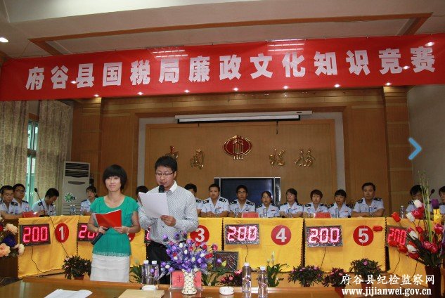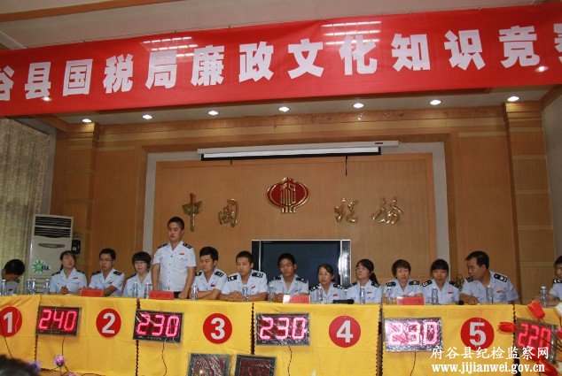 此次竞赛活动主要围绕《中国共产党党内监督条例》、《中国共产党纪律处分条例》、《中国共产党党员领导干部廉洁从政若干准则》、《行政机关公务员处分条例》、《建立健全教育、制度、监督并重的惩治和预防腐败体系实施纲要》、税收法律法规知识等内容进行。为确保竞赛公平、公正、顺利进行,该局还特别邀请县上有关部门领导到场指导。经过激烈的角逐,县基层代表队、县局(二)代表队、高石崖代表队分别获得前三名。