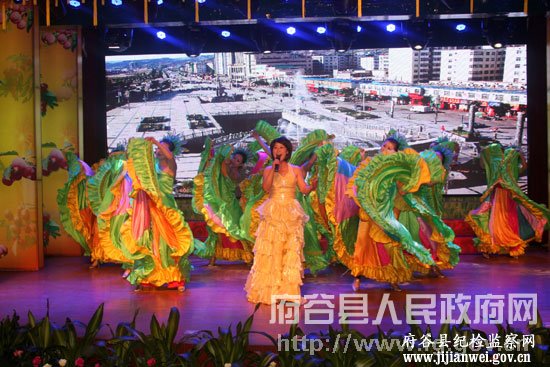 “党旗在召唤,国旗在嘱托,纪检监察,肩负神圣职责……”深情而铿锵的歌声拉开了晚会的帷幕。极赋地方特色的大型歌舞《府谷 我的家乡》,二人台曲牌《八板》,配乐诗朗诵《为了人民的重托》,小品《形象大使》,歌曲《浩荡乾坤》、《唱响正气之歌》等一批主题鲜明、品位高雅的节目令人耳目一新、回味无穷,使观众掌声经久不息。