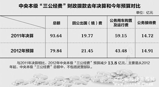2012年中央本级“三公经费”预算减少13.8亿元