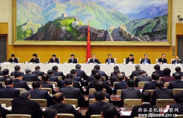 3月25日,国务院召开第四次廉政工作会议,中共中央政治局常委、国务院总理温家宝在会上发表讲话。中共中央政治局常委、国务院副总理李克强,中共中央政治局常委、中央纪委书记贺国强等出席。新华社记者 张铎 摄