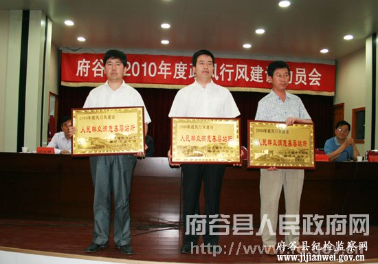 会上,县纪委监察局局长孙云林对2010年政风行风建设工作进行了安排和部署,对各单位今年政风行风评议工作提出了新的要求,并要求参加政风行风评议的工作人员严格遵守纪律,保证评议工作的公平与公正。大会同时宣读了《关于严禁党员领导干部在婚丧嫁娶事宜中大操大办的规定》 、《关于进一步规范公务接待 严格禁止公款大吃大喝的规定》、《关于开展集中整治党员干部参与赌博活动的实施意见》三个文件,为我县干部作风的进一步好转打下坚实的基础。大会为2010年政风行风评议员颁发了证书,向获得市级创建人民群众满意站所、服务窗口单位颁发了奖牌。