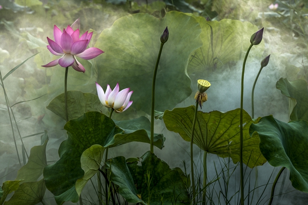 过雨新荷生水气。高影参差,无谓思量睡。(李淑辉 摄)