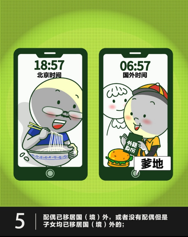 (五)配偶已移居国(境)外,或者没有配偶但是子女均已移居国(境)外的;