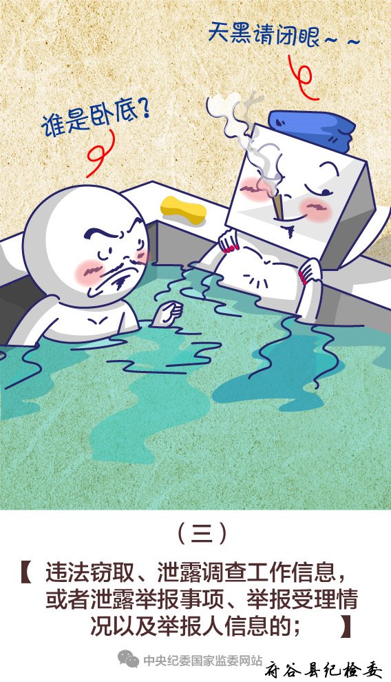 (三)违法窃取、泄露调查工作信息,或者泄露举报事项、举报受理情况以及举报人信息的;